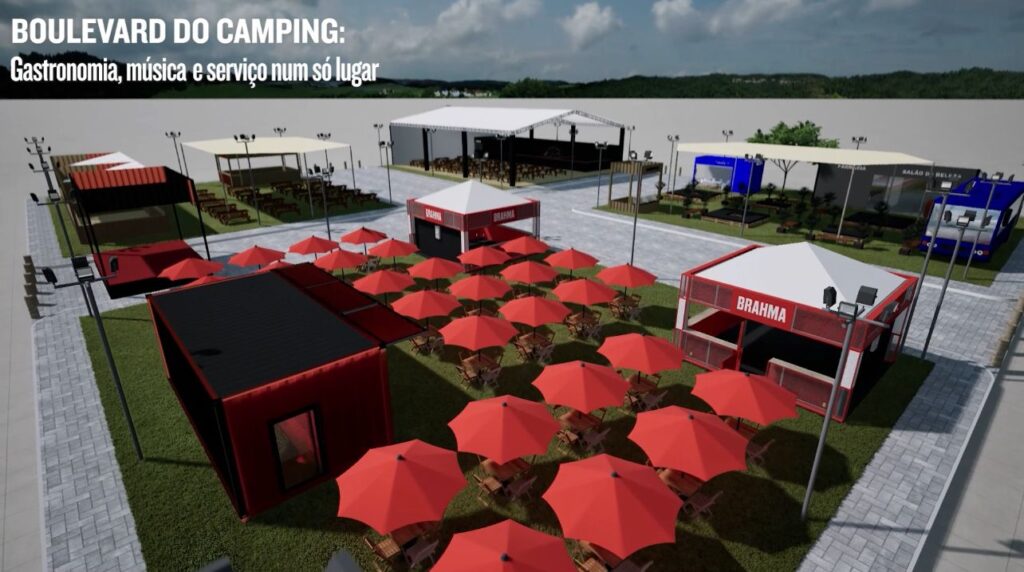 Entre os serviços disponíveis no Boulevard do Camping estão lavanderia, serviço de locker, salão de beleza, barbearia, cafeteria e opções gourmets numa praça de alimentação exclusiva que também contará com apresentações musicais. O local também conta com paisagismo, áreas de convivência e integração.