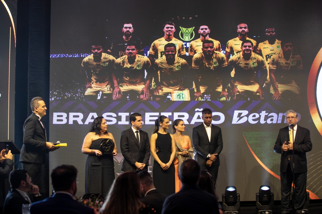 Lembrando que estamos falando de um campeonato recheado de clubes milionários e SAFs poderosas. Na noite da premiação, o Mirassol FC foi representado no palco, ao som do hino do time, pelo seu presidente, Edson Ermenegildo (acompanhado da esposa Lurdinha); Rodolfo Antunes (com a esposa Juliana), representando o vice presidente Junior Antunes; e Paulinho, executivo de futebol do Mirassol (com a esposa Vivian).