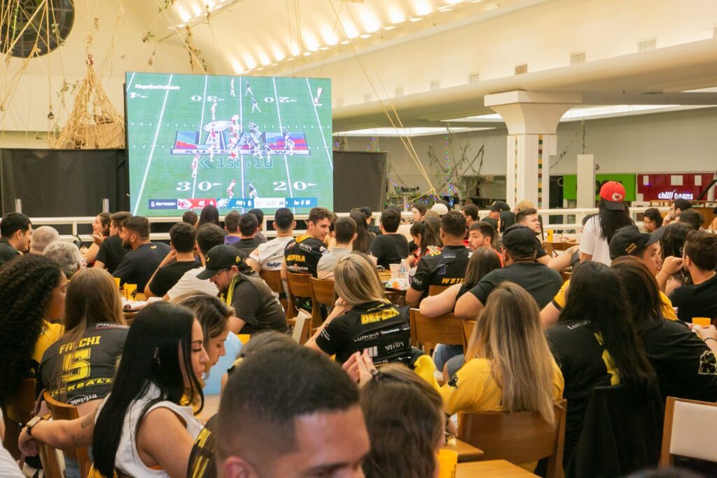 A transmissão que acontece no Riopreto Shopping é uma parceria do centro de compras com a loja New Era (marca que detém os direitos de venda dos bonés oficiais da NFL) e o time de futebol americano Rio Preto Weilers.