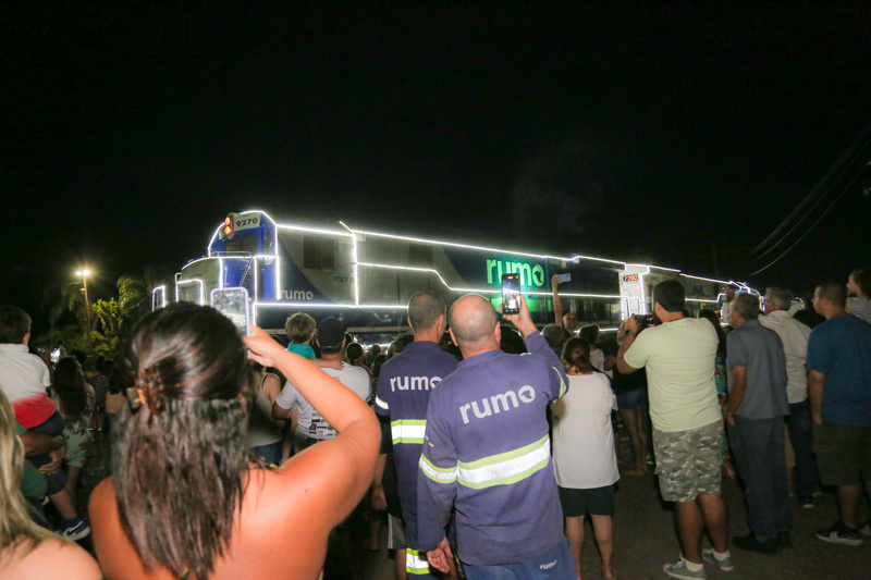 As locomotivas C30-7, da Rumo e da Associação Brasileira de Preservação Ferroviária, que foram decoradas com mais de 1.500 metros de fitas LED e terá a…